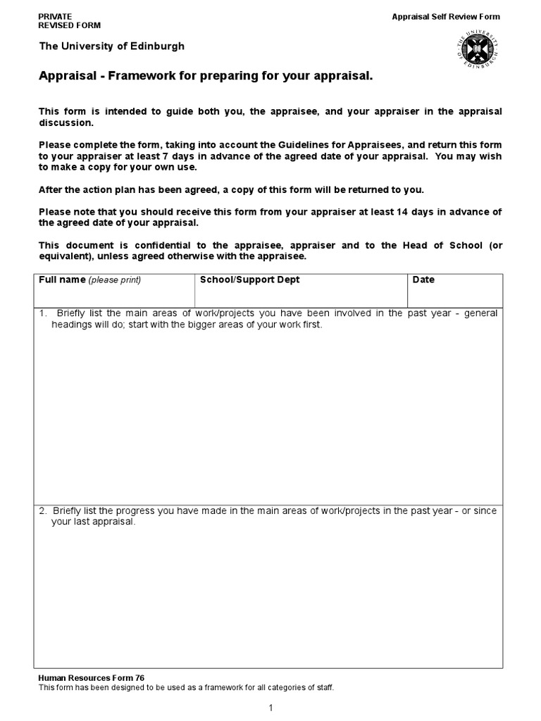 Forms used to review competency based performance appraisals setting processing options for the current performance appraisals program (p087712) reviewing competency based performance appraisals The review appraiser does not have to go inside the subject property but only has to view it from the road. Employee appraisal form sample by buy sample forms 764 views. These forms are important for knowing about a property/land in relation to residential and official work. A staff appraisal form is a useful way to structure a performance review with your employees. This template should be used for review and evaluation purposes. Fill out on any device. 2016 annual performance review leadership form employee name: Please find the performance review form attached. Conduct employee performance reviews online with a free performance appraisal form. Among other things, it helps to document your discussion, as well as specific competencies. Performance appraisal forms to help managers simplify documentation and review processes. Can you see why an appraisal review is done and why it's important to the appraisal process? The university of edin !rh. Performance appraisal form (including supervisory skills). In looking over the commercial appraisal review report form presented in this course, you notice that there are two major parts. Performance appraisals are used to assess an employee's performance and provide a platform for feedback about past, current and future performance. Rate the employee's performance during the review period by checking the most appropriate numerical value in each. This form is intended to !ide dis'!ssion% oth yo!& the appraisee& and yo!r appraiser in the appraisal. It's a useful tool to keep before your employee's performance review, give them an appraisal form to fill out themselves. Also, may i know the criteria for awards and bonuses? Description detailed 5 page document that will help you to review your employees work and evaluate. Contents 2 employee evaluation form 6 how to prepare a performance review form? Who will be reviewing my performance appraisal form? In 360 degree appraisal system an employee performance is evaluated by its colleagues, peers and the manager and will rate the employee performance, learn about what is 360 degree performance. Save time and costs from scanning paper forms and repetitive data. Custom performance appraisal review form. Appraisal forms can be used by the hr department to examine how much each employee contributes to the company during a certain period of. Learn about why it's important to write smart (specific, measurable, achievable, relevant and timely) employee review goals on a performance appraisal. Click here to download employee performance form. An appraisal form should help you thoroughly evaluate your employees.