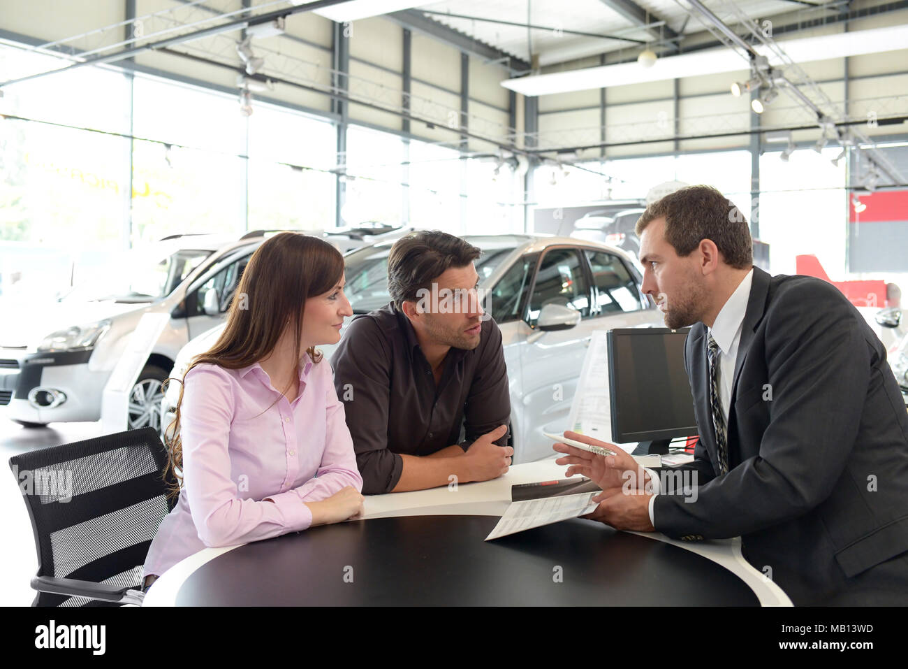 Car Purchase Contract With Red Car On Center Auto Purchase Agreement Stock Photo Alamy : Customer Buying A Vehicle At Car Dealership.