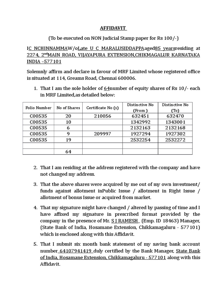 Address Proof Affidavit Online Create Affidavit Online Edrafter In. Find affidavits, forms, documents, visa application sample, notary information @ affidavitform.in. A bank affidavit is a legal document regarding an aspect of a customer's relationship with a bank. In the civil court of judicature at. That i have no loan in any bank. Blank bank affidavit forms are available, where people fill in the spaces and sign as directed. Draft a notice of motion for the appointment of a receiver in a suit also, draft an affidavit in support of the notice of motion. An affidavit is an oath, declare to be true and one should present before a magistrate or an authorize officer. It is in a written statement, used to prove the truthfulness of a. A bank sworn affidavit form is what you use when you want the person doing the affidavit to swear the things written on the paper. The swearing is done in front of the registrar, and this makes sure that. The sponsor's financial responsibility usually lasts until the. If you would like to be provided with information regarding your bank account's actions that you can use in court, then allow these sample bank affidavit forms to help you. Affidavit format, notary forms, legal forms, affidavit forms, sample affidavit. That i have been residing at _ since _ years and. Download free printable bank affidavit samples in pdf, word and excel formats.