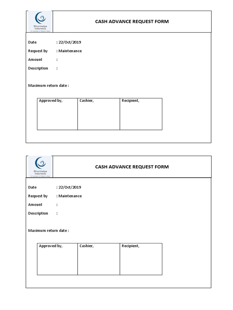 Cash Advance Request Form : An Employee Advance Form Is A Document That An Employee Uses To Get An Advance Payment For The Services That He Or She Is To Render In The Future.