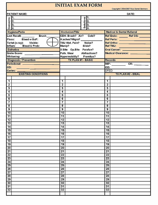 Examination Record Form Smartpractice Dental Dental Charting Notes Template Dental : Most People Should Have An Exam Every Six Months.