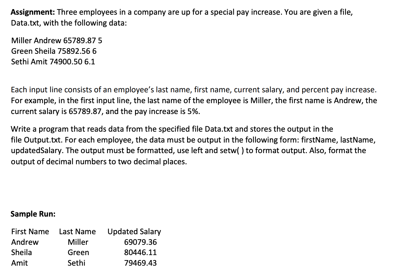 You are given a file, say ch3_ex6data.txt, with the following data for each employee, the data must be output in the following form: