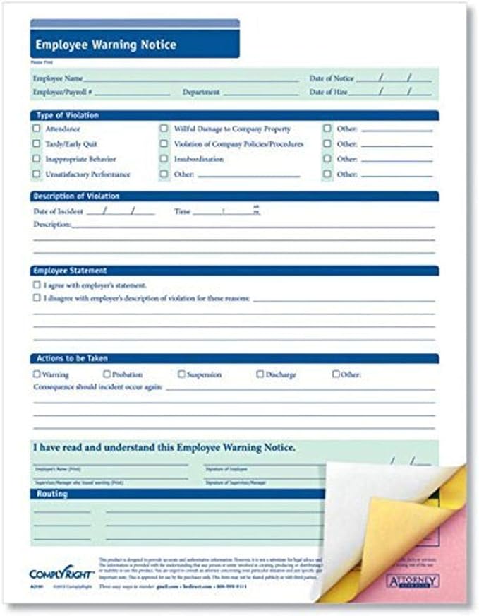 Amazon Com Complyright Employee Warning Notice 3 Part Carbonless 50pk Office Products , Its Purpose Is To Discipline An Employee.