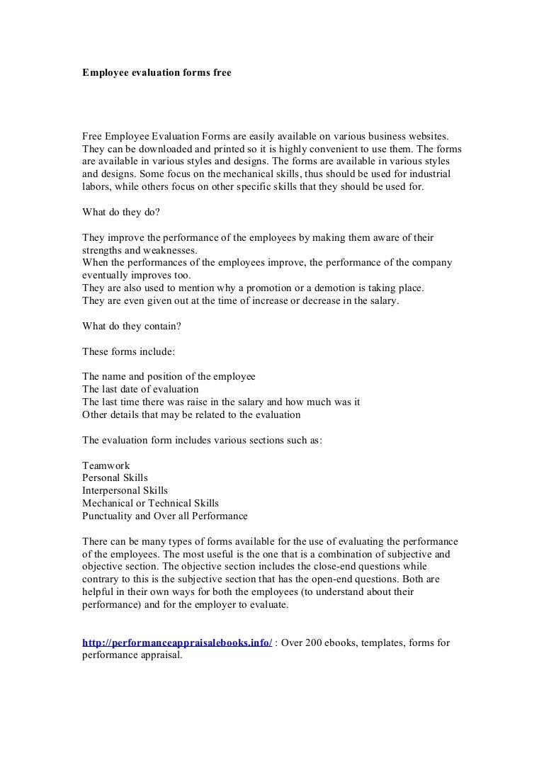 Free Fillable Employee Evaluation Forms Fill Online Printable Fillable Blank Pdffiller . Get Instant Access To A Free, Comprehensive Library Of Thousands Of Business Forms, Templates, And Contracts Online Today!