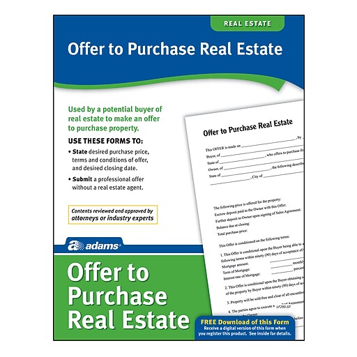 Amazon Com Adams Offer To Purchase Real Estate Forms And Instructions Lf290 Legal Forms Office Products. Standard offer to purchase real estate form. Then take action and grab our free real estate offer form to make the seller an offer right now. The templates have placeholders to fill in all information to get into a legal agreement on the terms and conditions for selling a property. This form is the first step in any real estate deal. This document may be needed before the agreement is signed. All of coupon codes are verified and tested today! It is completed by an interested buyer then presented to the seller, stating the basic terms under which the buyer is willing to purchase the. See the best & latest free real estate purchase offer forms on iscoupon.com. Below are 48 working coupons for free real estate purchase offer forms from reliable websites that we have updated for users to get maximum savings. Real estate form template is used to create real estate purchase agreement documents. The templates can be of major use because they come in a variety of. Real estate counter offer form. While most purchasers are normally completely mindful of terms with respect to value, shutting date, and budgetary plans, there is a propensity to neglect a significant. The term condition in an offer to purchase real estate refers to a provision that must be met for the real estate sale to go through (like if a seller is required to provide a certain form to a buyer before the sale can be completed). This is drafted by the seller who accepts the offer to purchase from the buyer, but only under certain changed conditions.