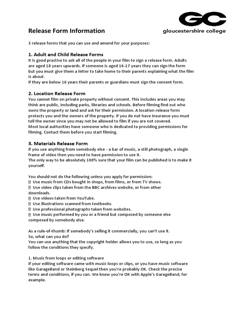 Release Form Information 1 Adult And Child Release Forms Copyright Government Information - A Model Release Form Will Protect You Against Civil Liability Lawsuit Should An Issue Arise Later On.