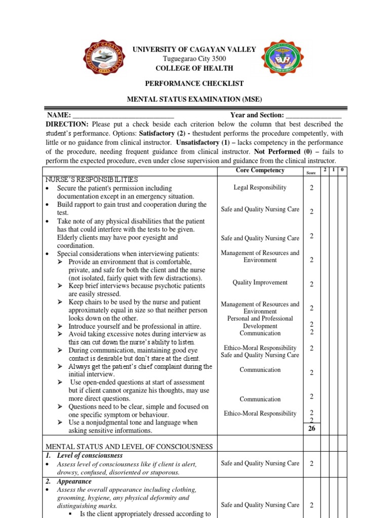 Mental Health Assessment Tools Contents Pdf Free Download. The mental status examination checklist mobile app is designed to assist medical providers such as medical students, primary care physicians, nurse practitioners, and physician assistants with routine medical examinations for mental disorders. Fillable mental status exam checklist. The mental state examination (mse) is a structured way of observing and describing a patient's current state of mind download the mental state examination (mse) pdf osce checklist, or use our interactive osce checklist. Mse checklists for children, adolescents, and adults allow the clinician to gather. The mental status examination checklist app is designed to assist medical providers such as medical students, doctors, nurse practitioners and physician assistants with routine medical examinations. One created by jeff patrick, the mental status examination rapid record form. Child mental status exam checklist cdc domestic mental health screening guidelines. Why perform a mental status exam? You may also be interested in our depression history taking guide. The mental status examination (mse) is an evaluation of a client's current overall functioning with emphasis on his or her cognitive and emotional the mse can be completed in a narrative or a checklist format. Nys mental health counseling license requirements. It systematically takes you through a mental status examination. I suspect the answer to this question lies not in recalling the number of lives we may have saved, but need a checklist style mental status exam to incorporate into your emr? Collection of most popular forms in a given sphere. The mental status examination (mse) is an important part of the clinical assessment process in neurological and psychiatric practice.