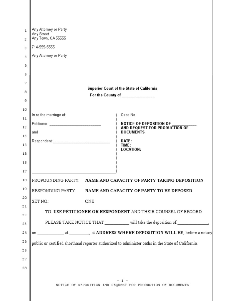 Sample Deposition Notice For California Divorce Deposition Law Legal Procedure , The Deposition Notice Shall State All Of The.