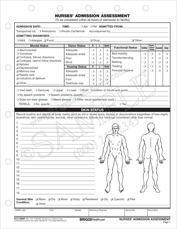 Nursing Admission Assessment Example. This can be called the base or foundation of the nursing process. Nursing assessment is important in the whole nursing process. Nursing assessment is the first step in the nursing process. It is important that the nurses should evaluate and observe for these factors to properly assist the patient and give immediate medications. Nursing assessment includes emotional and mental assessment, physical assessment, and environmental and social issues that affect the patient's health. All these professionals have the common goal in providing the best care for the patient. With a weak or incorrect assessment, nurses can create an incorrect nursing diagnosis and plans therefore creating wrong interventions and evaluation. / free 18+ sample nursing assessment forms in pdf | ms word. Concise nursing assessment completed at the commencement of each shift or if patient condition changes at any other time. Admission assessment is in the admissions tab of the adt navigator with additional information being entered into the patient's progress notes. Nursing assessment forms are absolutely necessary before admission for medical purposes. They are complete physical assessment forms that check the entire body through manual interview and system reviews. The medical field is composed of a number of medical professionals from various fields. Nursing assessment is the gathering of information about a patient's physiological, psychological, sociological, and spiritual status by a licensed registered nurse. In order for this goal to be met, medical professionals should.