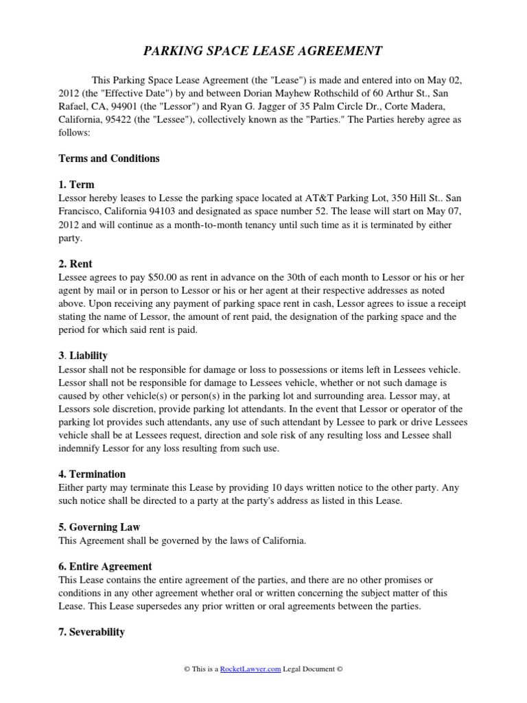 Parking Space Rental Agreement. A 'parking space rental agreement' is a contract that is entered into between a property owner and a car owner. Parking rental agreements are generally simple documents. The contract can either be set for a fixed term or on a month to month. Property owners benefit from ongoing rental payments and renters benefit from a guaranteed parking spot. The tenant will pay to the said landlord monthly and every month during the said term of the lease a sum of. The episode was the 22nd episode of the third season. A parking space rental agreement form is a document which is used for listing down the terms and conditions of a parking lot property owner and a tenant who will be using the parking space for a certain rental period. This contract generally runs for a. Renting parking spaces is becoming increasingly popular. It also takes into account a number of typical issues which may arise in parking space rental agreements such as the owner's responsibilities for damage and the user's responsibilities for matters such as nuisance or. It basically gives a car owner the leeway to use a designated parking lot to station his vehicle for a predefined amount of time in return for some money. What is included in a parking space lease agreement? A rental agreement is a lease in which the asset is tangible property. A parking space rental agreement is between a landlord that controls an area of space, designated for a vehicle, and allows a person to rent it in return for payment. Generally, there are limited state laws on this type of arrangement.