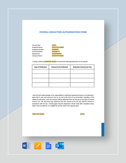 Payroll Deduction Authorization Form Template . 87.5 Kb (2 Pages) ( 4.7, 25 Votes ).
