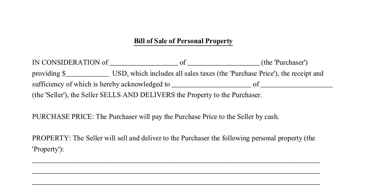 Property Bill Of Sale Dochub- Characteristics Of The Personal Property, A Separate Agreement Must Be Drafted.