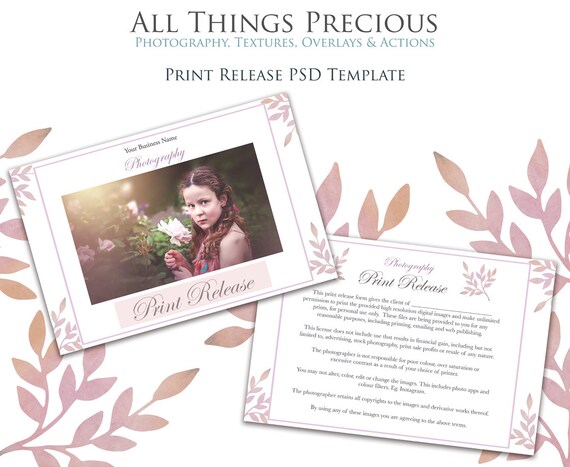 Print Release Template Forms For Photographers Bittersweet Design Boutique - Instant download photography print release template form.
