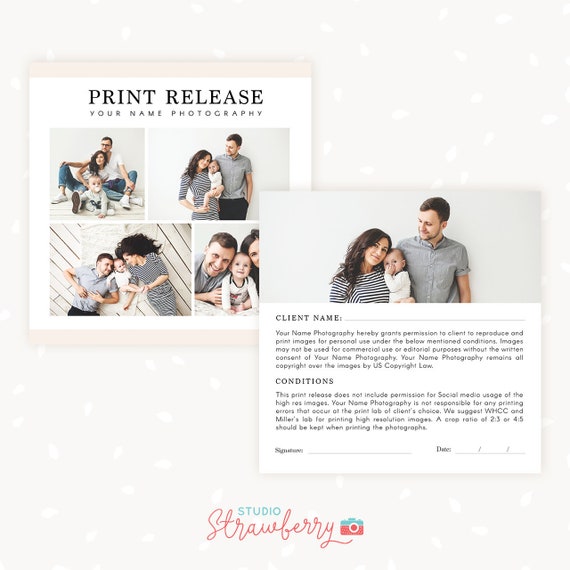 Grant clients permission to print hard copies of their photographs. Melissa cervantes photography provides licensed copies of all images to our clients. This is the most commonly used release form. Collection of most popular forms in a given sphere. Create, save and print for free. Popular items for print release forms. There are several types of release forms: Are you looking for a photo release form template? The print release i have now is for personal portraits and states that the images cannot be used for what kind of a print release form should i send to them? With avery design & print, creating quality personalized products has never been easier. Please follow the instructions on this page to access the forms in the manner most convenient to you. Jotform photography form templates will jump start your session agreements, model release forms, order forms, photo consent forms, and inquiry forms with ease. The print release form should specify all the details of the arrangement: Print photo release forms to accompany digital files. Fill, sign and download print release form online on handypdf.com. The attorney release form must be printed on your attorney's letterhead and signed by you and your attorney. All pers forms are available for print, to download, or to have mailed to you. Please allow him/her to print these images at your establishment. Grant clients permission to print hard copies of their photographs. Free printable downloads of model release form and photography release forms. Check out our print release forms selection for the very best in unique or custom, handmade pieces from our shops. A photo release form allows an individual or photographer to obtain consent from the other party in order to use photographs for. Print release forms are essential commodities for photographers and image artists that help them in with print release form pdf client gets the permission for image reproduction and printing it as. Does anybody know of a sample print. Be sure to enter the attorney's name and address information in the mail results to this. It's a modern and creative eligible photo print release forms template for you, everything should be pretty to strength forward also user friendly. Adobe photoshop, illustrator and indesign. And get better data to fuel your business. However, many photo reprint businesses demand a copyright. This article is for photographers and clients alike to help preserve the rights of both parties and the value. How many times the photos might be printed, by whom, and for what specific purposes they might be used.