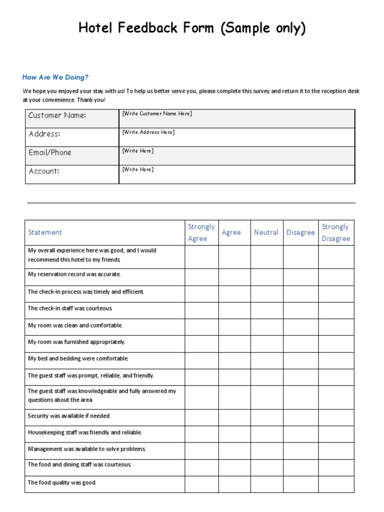Sample Feedback Form- Collection Of Most Popular Forms In A Given Sphere.