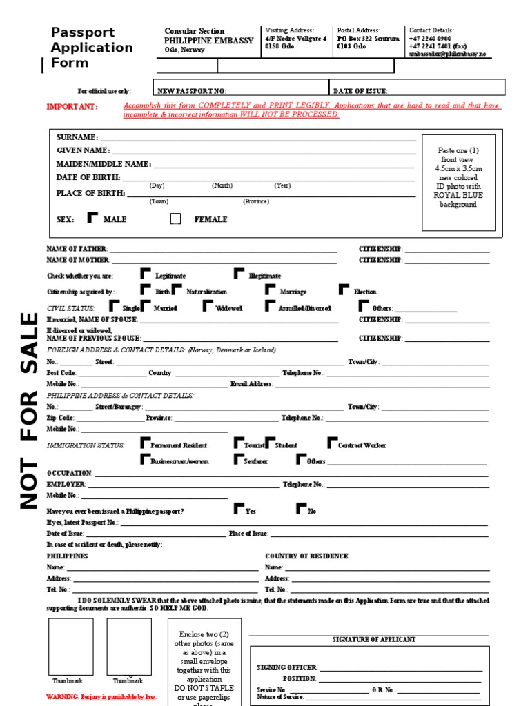 Dfa Application Form Passport Immigration Law. Passport application forms are vital for obtaining a passport. Passport applicants can download and print the application form for fresh/reissue of passport/diplomatic or official passport/police clearance certificate (pcc)/identity certificate/loc permit. Citizens in order to obtain the following: Consulate general of the people's republic of bangladesh los angeles united states of america notification on the issuance of machine readable passport consulate general of bangladesh in los angeles is going to. You may still use all you may fill out these forms using an online form filler or by downloading a pdf of the application. The sample forms are thus provided for the applicant to. Replacement of a the completed, but unsigned application form must be presented to an agent at a passport acceptance facility or regional agency along with required. Based on your form, you would be granted approval for your passport or denied one. The form filler tool is a shared resource for 4 of our forms. All passport offices in greece and the consulates authorities abroad are supplied with the appropriate application forms for the passport issue. Download free printable passport application form samples in pdf, word and excel formats. Sample passport renewal application form. A passport application is probably one of the most significant documents or forms that you'll have to fill in your lifetime. Notice about passport forms expiring. Security of a country and its residents have become a top priority for the governments also, accurate information is crucial for the successful acceptance of the application.