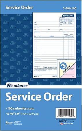 Amazon Com Adams Service Order Form 3 Part Carbonless 5 2 3 X9 Inches 250 Sets Per Pack 3 584 Blank Purchase Order Forms Office Products , Use Them To Process Repair Orders, Job Orders And Service Orders.