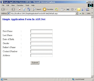 Simple Application Form Freewd Net Free Word Download - This Article Will Explain You, How To Create Simple Online Application Form In Asp.net.