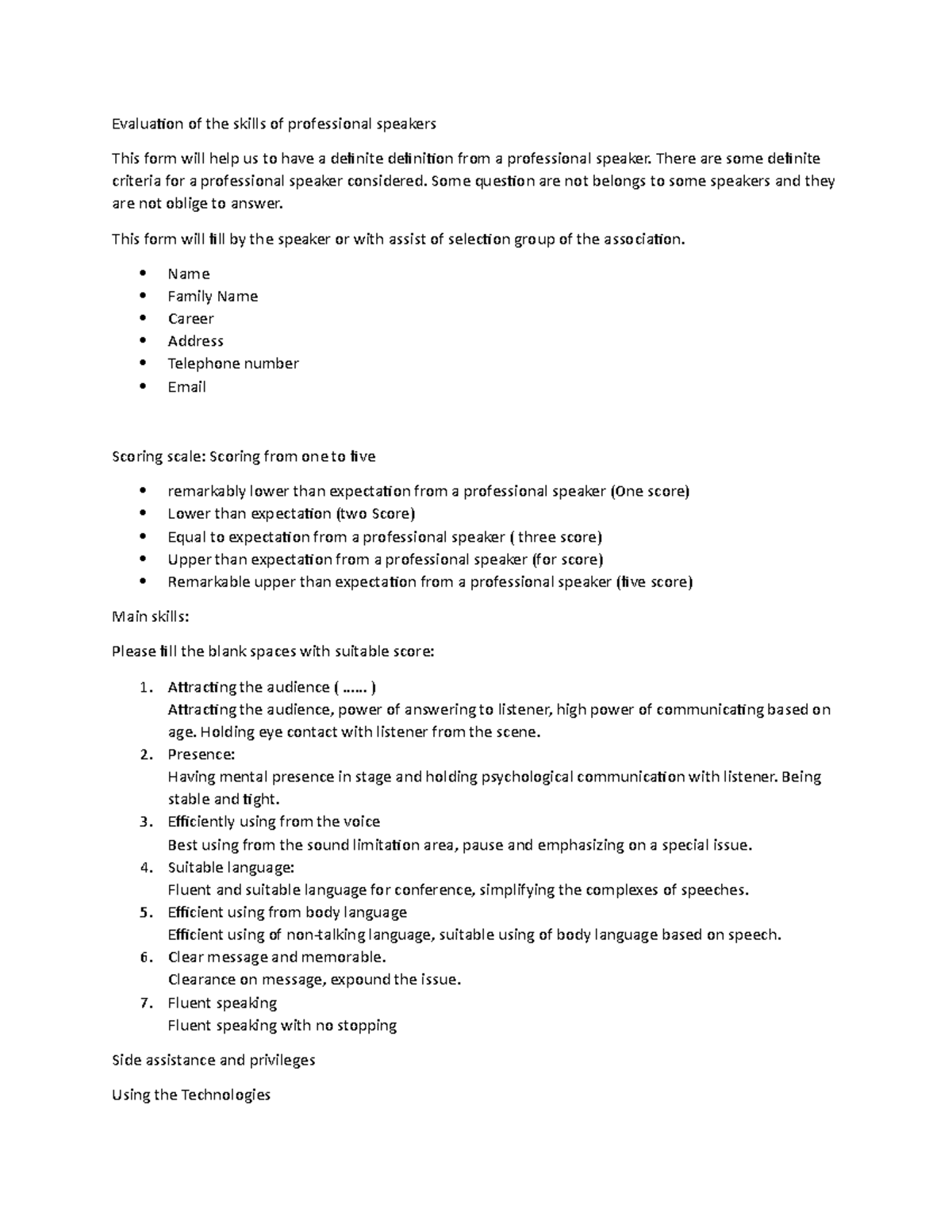Speaker Evaluation Form. Public Speaking And Leadership Are Skills, And Like Any Skill They Can Be Developed And Improved, Through Practice And Feedback.