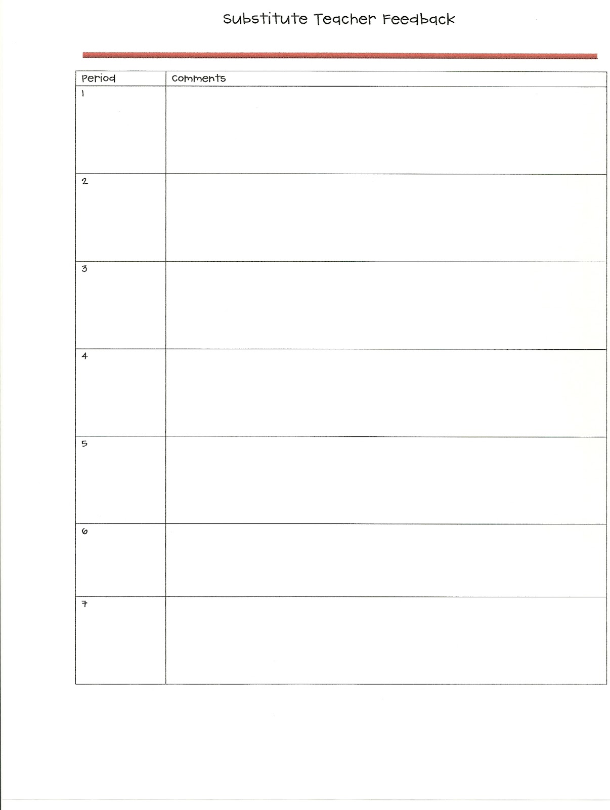 Adriana zuluaga on october 14, 2017: Let these two substitute teaching resume samples show you how: Provide feedback to administration team as required. I feedback form for teacher trainers observing and giving feedback to students doing their esl teaching practicum. A substitute teacher feedback form refers to the forms which are designed to gather feedback and suggestions from the students. Deploy a program of study proscribed in the lesson plans left by the classroom teacher. If something is not going as planned or if you cannot resolve a discipline problem in your classroom, complete one or more referral forms and. One of the best ways to do this is by offering positive feedback when students make a providing feedback is so important for student learning! I really hope this helps someone out! There's no substitute for getting feedback from those who know their teacher best. Being a substitute can be a daily adventure into the unknown. The primary role of a substitute teacher is to continue student learning. As a classroom teacher, i appreciated feedback from my substitutes. Printable forms for your substitute teacher folder. Students who gave you a hard time 1. Structure your questions around areas that need improvement and set up workshops to help the whole team advance. Explore career information by location. There are a variety of such forms, each for a particular. Fillable training feedback form for employees. You'd be surprised at what comes out of an anonymous teacher feedback form. This is where a beautifully written lesson plan for a substitute teacher can change everything. Teachers constantly feel as if they cannot ever take a personal or even a sick day because of the work that is required to prepare your substitute teacher for your students. Download, fill in and print substitute teacher feedback form pdf online here for free. As a substitute teacher, you will be faced with the difficult task of dealing with a classroom of enter the classroom as the teacher for the day—because you are. Collection of most popular forms in a given sphere. District policy and procedure for arranging substitute teacher coverage. I see lots of superb teachers and lots of great lessons. Use this form along with my substitute teacher folder. Improve your teaching skills by gathering feedback from your students with this student feedback form. Teachers can meet with a few students per day or per week depending on specific projects, deadlines and individual. Received 96% positive feedback from teachers.