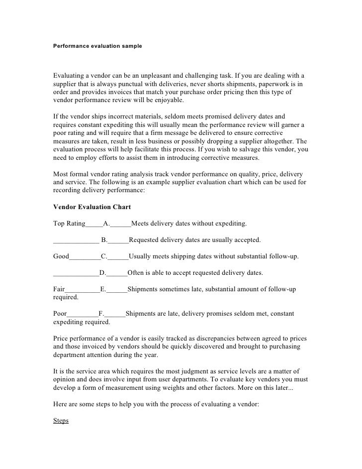 Performance Evaluation Sample. These check just how well a vendor is able to sell his products or services to the masses. Such forms include all details about the suppliers' firm, its products, and services. The scorecard evaluation process involves defining the ideal vendor characteristics or requirements based on your business needs, choosing performance metrics that are measurable, weighting the. Supplier / vendor evaluation forms are forms that are used to assess those vendors hired by companies to become. Printable vendor performance evaluation form template. Generally, a vendor evaluation form is a document that is used to evaluate or assess the performance of the vendor as well as the effectiveness and the efficiency of the transactions being provided to the consumers in a. Supplier evaluation is a process undertaken by companies to evaluate and maintain a record of the best suppliers. Fill, sign and send anytime, anywhere, from any device with pdffiller. Download free vendor management templates, including contracts, scorecards, and vendor lists. Learn why vendor performance evaluation matters, what criteria to include and how to conduct the process from start to finish. Fillable vendor performance evaluation form. We support you and your company by providing this vendor performance evaluation form template, which will save your time, cost and efforts and help you to increase the results that come out of your purchasing process. Vendor performance evaluation forms are used to check on the performance of any vendor. Collection of most popular forms in a given sphere. Vendor selection and evaluation example.